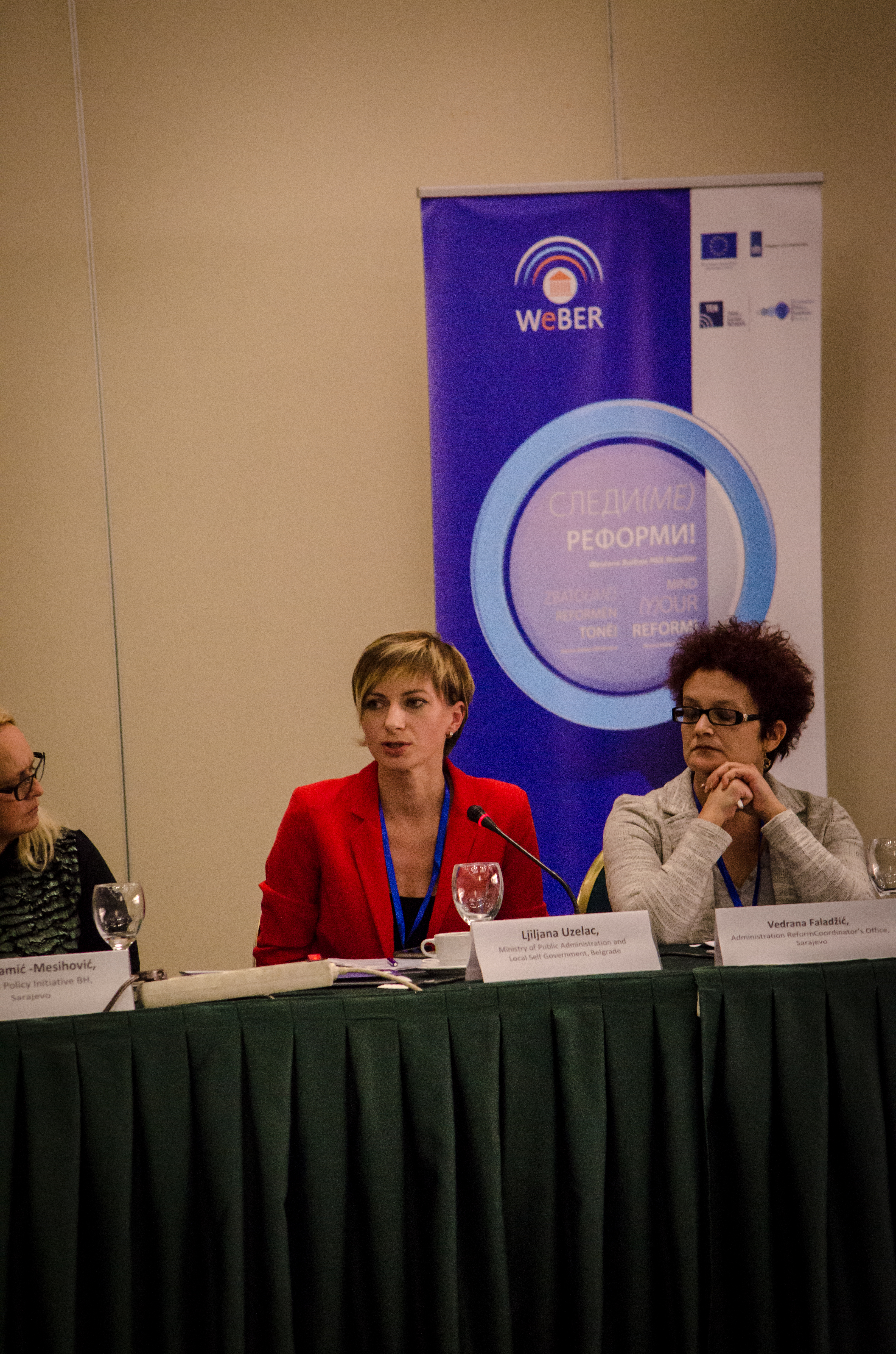Ms. Lazarevic presented the main achievements of the WeBER project related to civil society capacity building in the area of public administration reform. She also spoke about the regional consultative mechanisms established as part of the Project, emphasising that “the WeBER Platform now gathers 22 strong CSOs within the regional level platform, and over 100 local CSOs as members of the National Working Groups on PAR in the 6 Western Balkan countries. It is our task and a challenge to build the capacity of the civil society in this highly complex area,” she added.