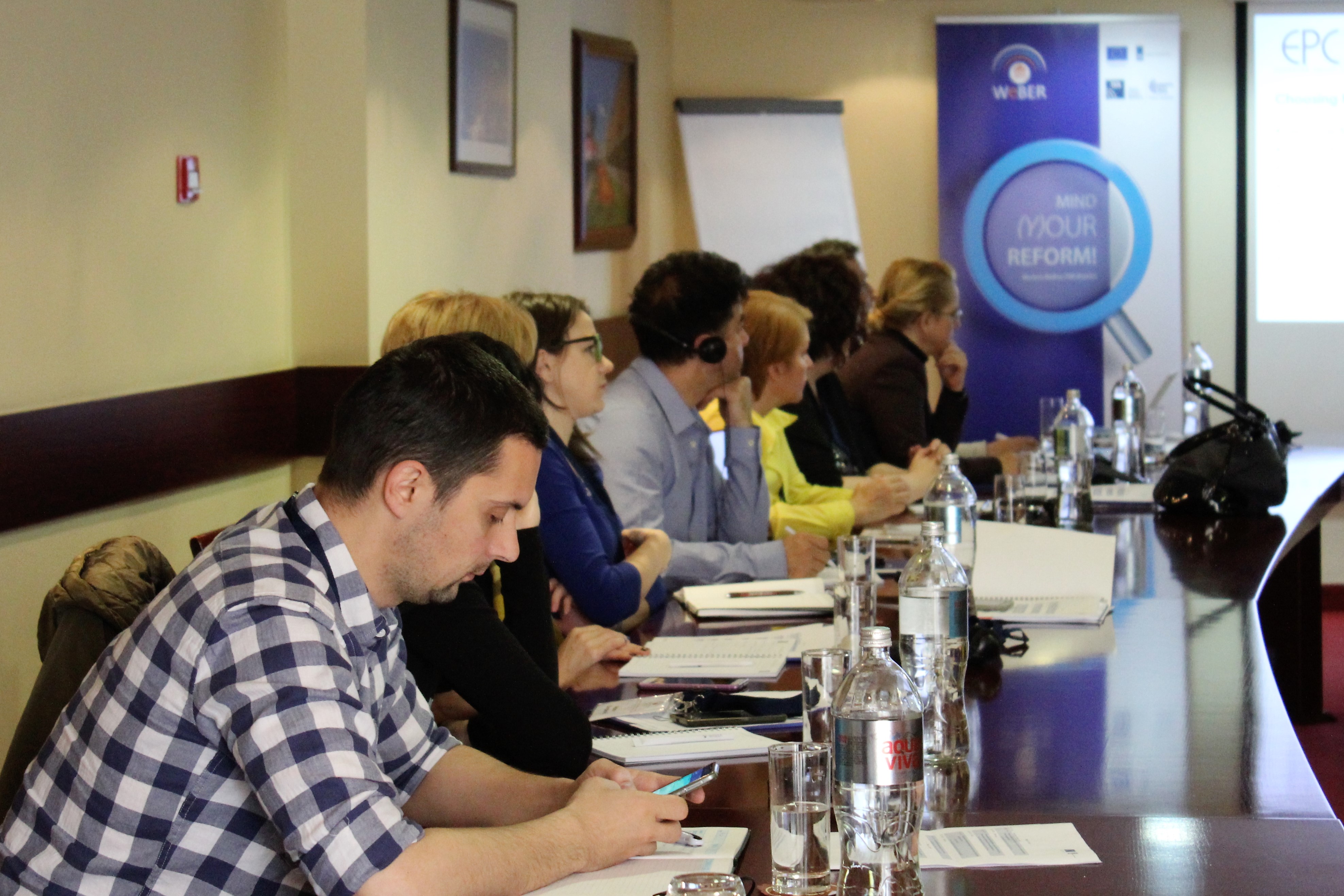 Sena Maric, CEP Senior Researcher, talked about the policy-making cycle, EU standards and examples of good practice in policy-making and policy co-ordination, and about civil society monitoring in the context of EU accession. Miloš Đinđić, CEP Senior Researcher, spoke about WeBER’s approach to the monitoring process in the case of the PAR. Corina Stratulat from EPC, partner organization within the WEBER project, talked about policy research and analysis and how Western-European think tank organizations work, as well as about communication with stakeholders in the area of public policy monitoring. Milena Lazarević, CEP Programme Director, spoke about WEBER PAR Monitor methodology, indicators for monitoring the PAR, as well as the research and analytical methods of PAR Monitor methodology.