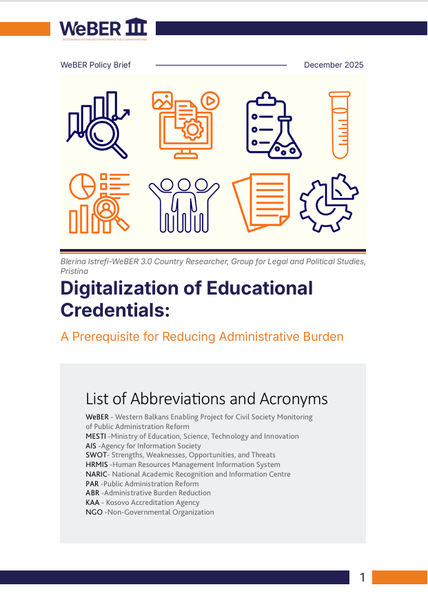 Public administration in Kosovo continues to face challenges that affect efficiency, transparency, and the quality of public service delivery. One of the most common problems for citizens is the repeated requirement to submit educational credentials such as diplomas, certificates, or transcripts often in physical or notarized form. This process not only increases the time and financial cost for citizens but also creates additional administrative work for institutions that must receive, verify, and store these documents. Although the “Once Only Principle” defined in the Law on General Administrative Procedures, requires that citizens provide their information to the state only once, this principle is still not fully implemented in practice when it comes to educational documents.